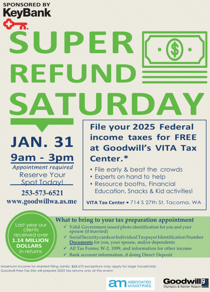 Thanks for checking in. We are not offering tax services this year. Please contact Goodwill (listed below) and/or click on this link for the IRS Free tax return preparation for qualifying taxpayers | Internal Revenue Service.